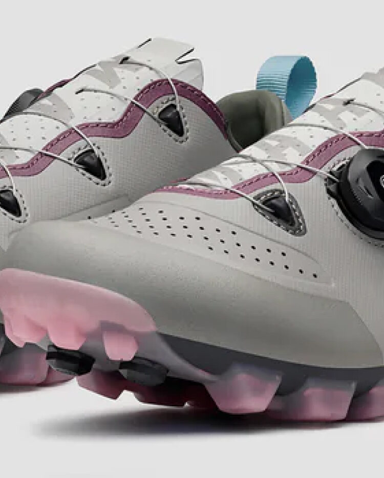 Avec un poids contenu de 327 g (taille 42), la Gran Tourer XC associe une semelle extérieure en TPU crantée pour une adhérence fiable sur terrain instable, et une semelle intermédiaire en carbone pour une rigidité maximale et un pédalage explosif.